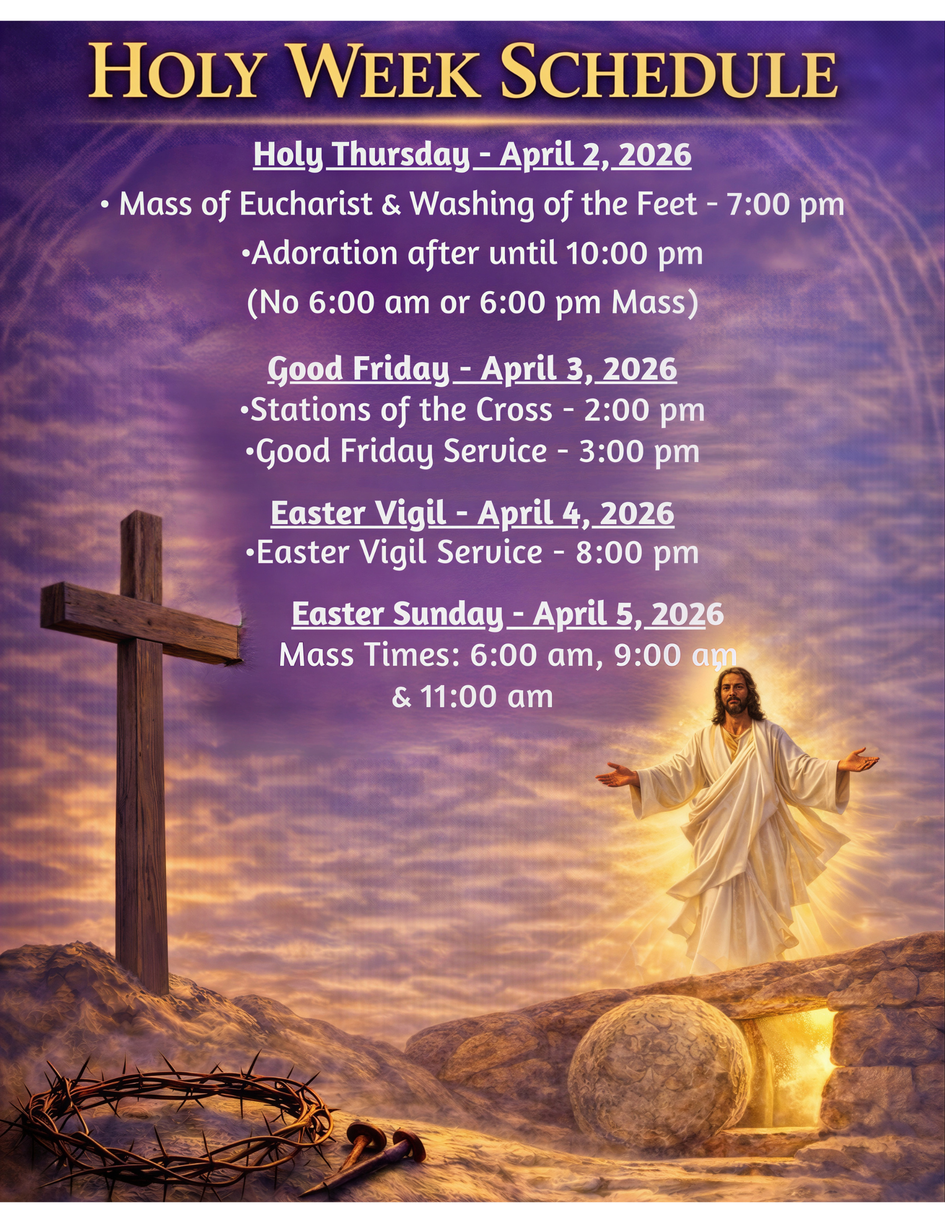 Holy week schedule for Immaculate Heart of Mary Catholic Church